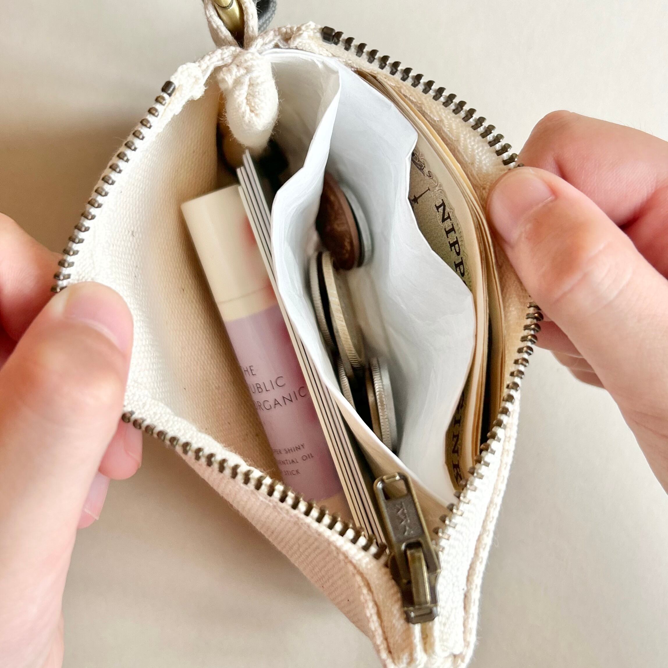 カードのほかにもリップクリームなど小物の収納も